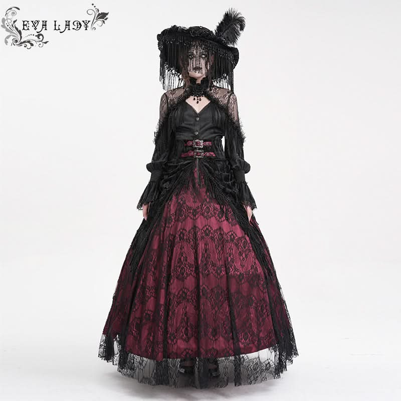 The Crimson Rose Masquerade Skirt merges baroque gothic romance with punk-edged drama in a high-waist silhouette that feels pulled from a haunted ball or anime boudoir battle.