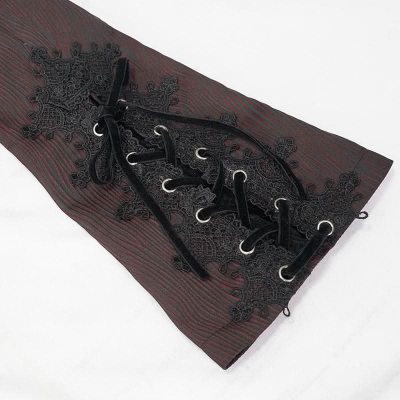 D'autres détails incluent de la dentelle appliquée sur les poignets et au centre du devant, ainsi qu'un design à lacets et un panneau en velours respectivement.