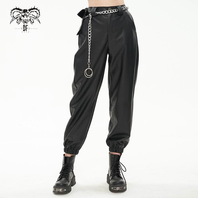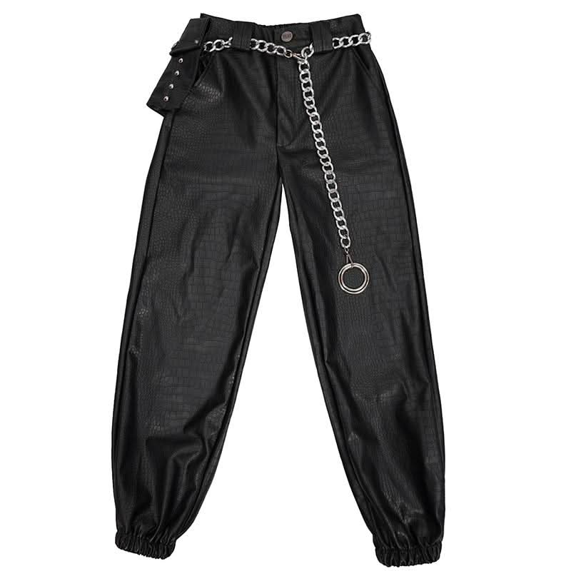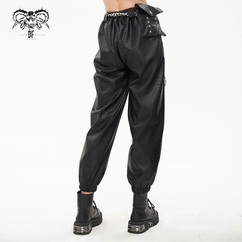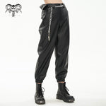 Pantalon cargo punk avec chaîne et sac.
