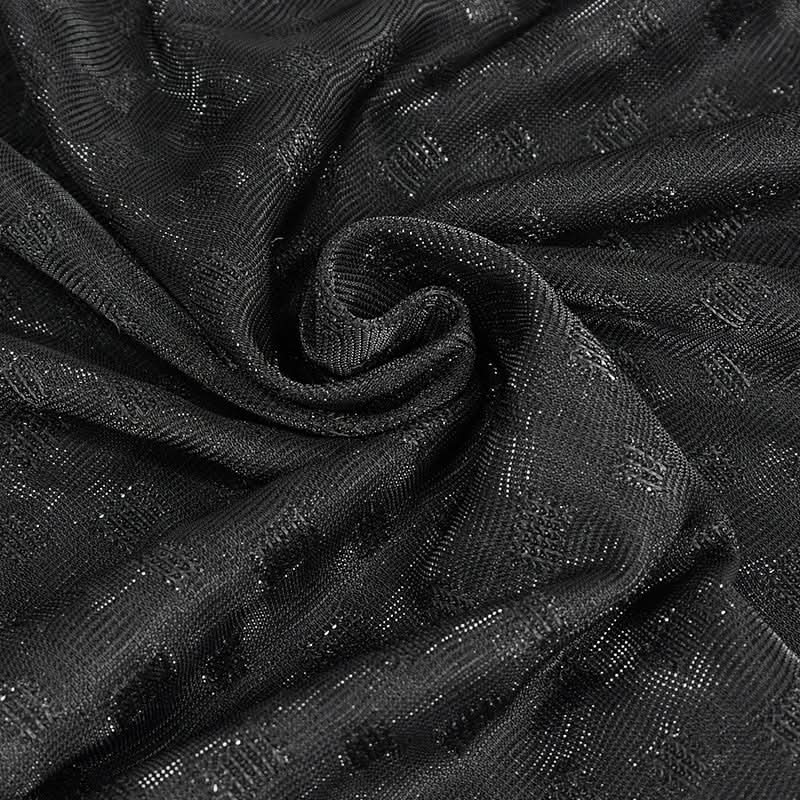 Le tissu principal de ce haut est un fil de maille composite imprimé noir avec une bonne élasticité.