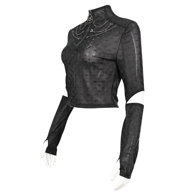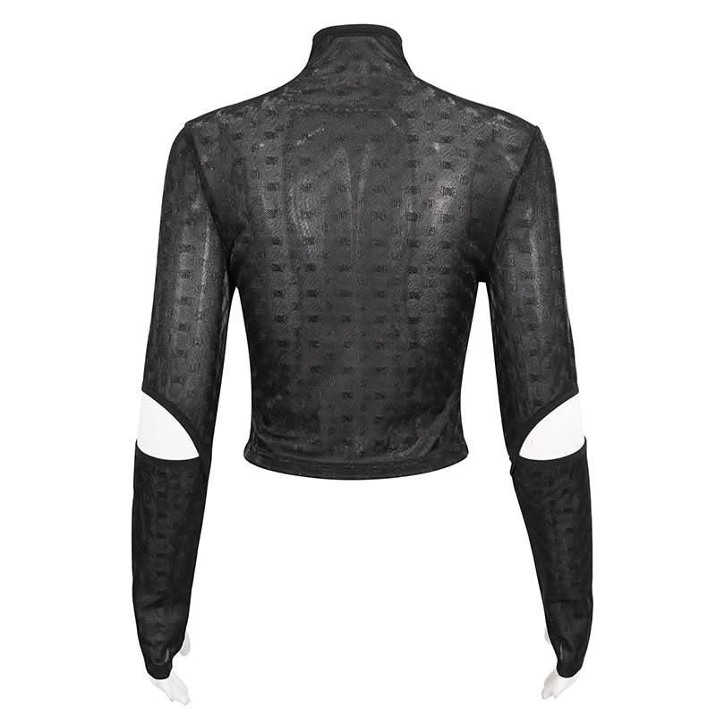 Embrace the shadows of the future with the Harlow Cyberpunk Mesh Tee, where edgy design meets otherworldly allure for the ultimate statement piece.