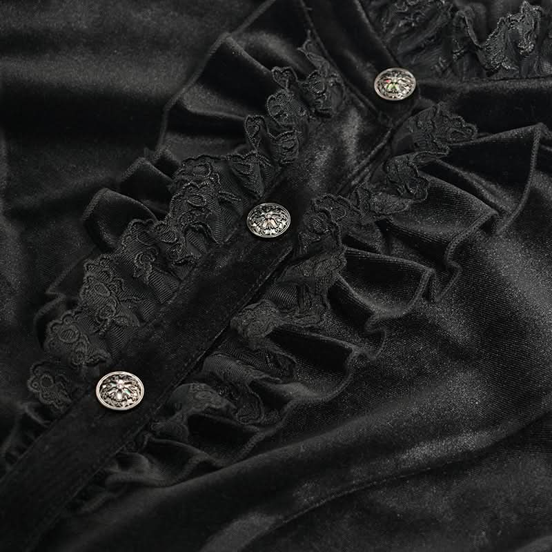 The Black Sabbath Swallowtail Shirt fuses glossy midnight velvet with stage-ready flair, creating an aura that feels pulled from a cult classic concert poster.