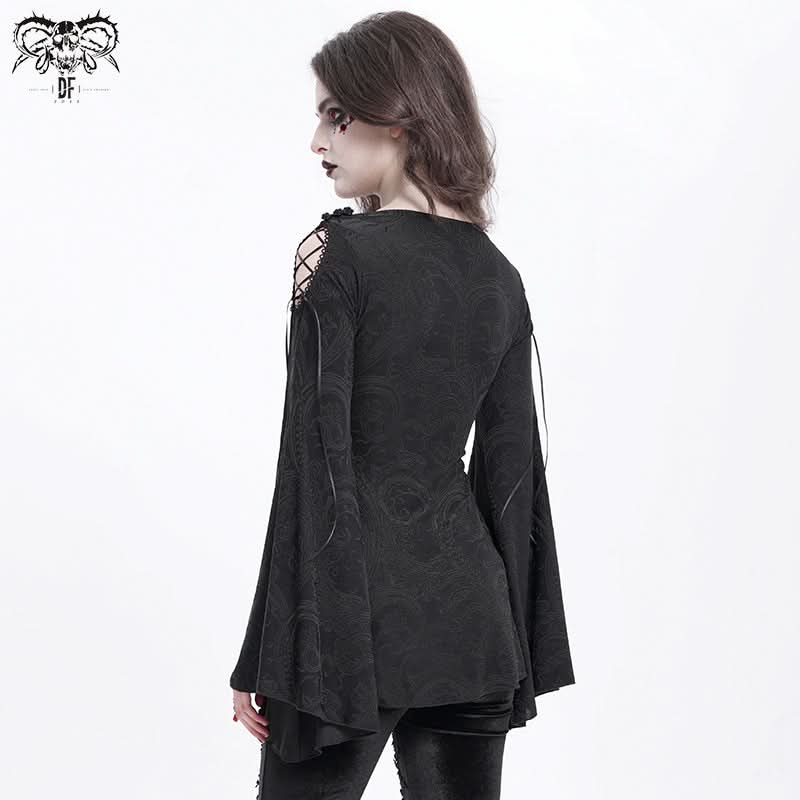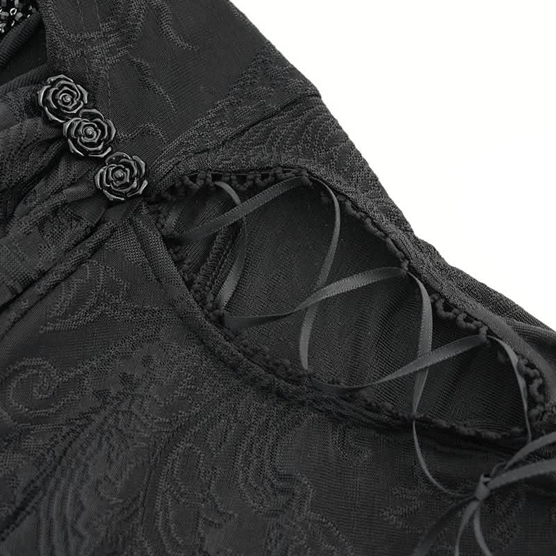 Its tactile flowers and hollowed‑out shoulder design evoke ruined rose gardens, moonlit ballads, and anti‑hero narratives perfect for visual‑kei layering, gothic romance fits, or alternative wardrobes that wear poetry in every seam.