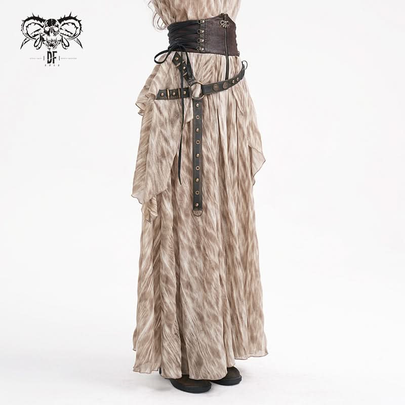 The Gilded Corsair Chiffon Skirt weaves pirate-era swagger with steampunk fantasy. Its two-tone chiffon layers and high-waist cut evoke wind-blown decks, brass-garnished airships, and tales told under storm-lit skies.