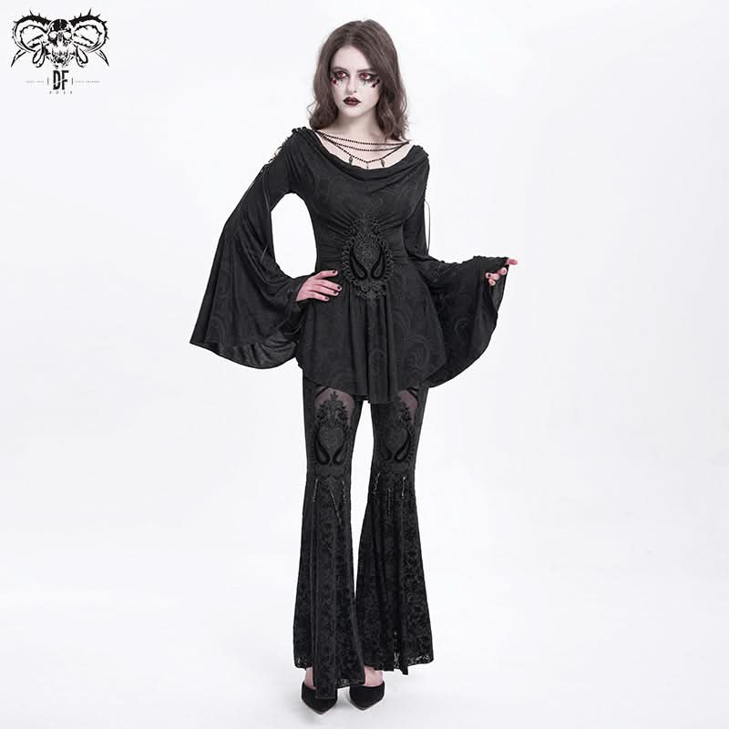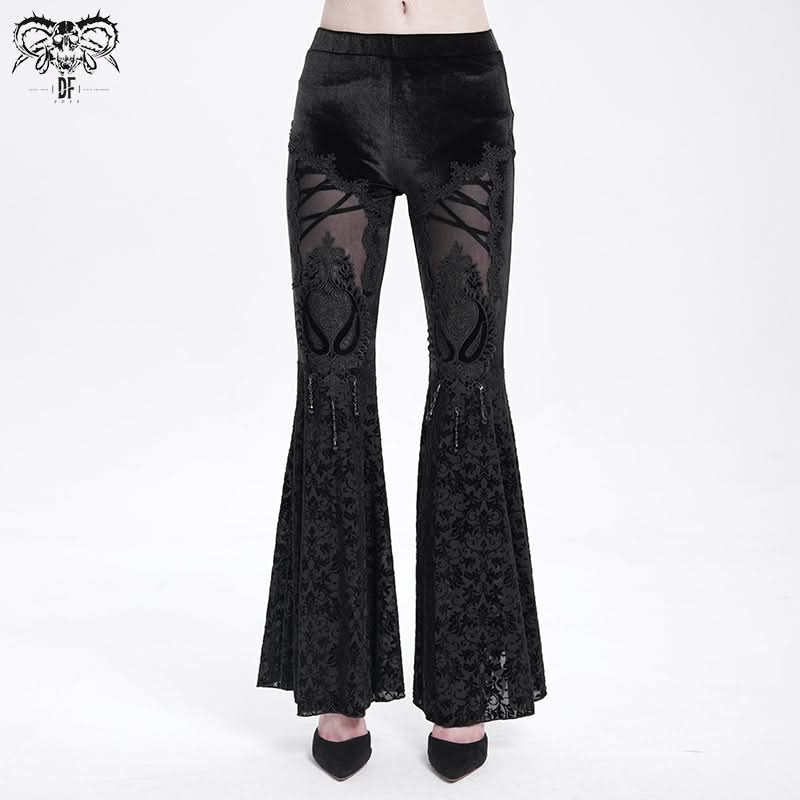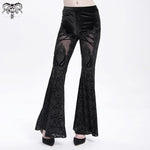The Phantom Fringe Mesh Flares blend spectral allure with punk defiance in a daring flared silhouette. Featuring hollow thigh cutouts and breathable mesh flocking, these trousers feel like they were ripped straight from a gritty cyber‑punk anime opening sequence.