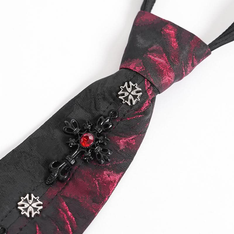 The Punk Requiem Tie channels raw alt energy with its bold punk silhouette and edgy motif accents.