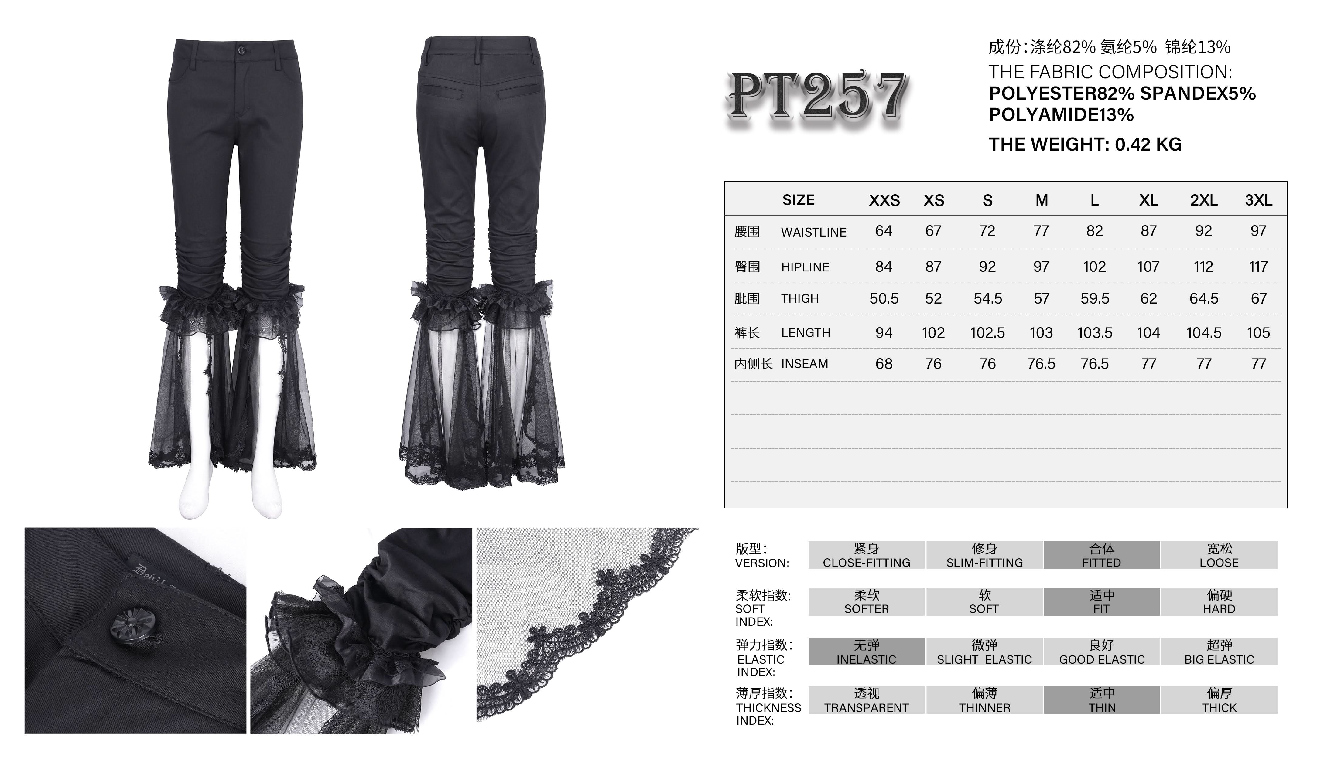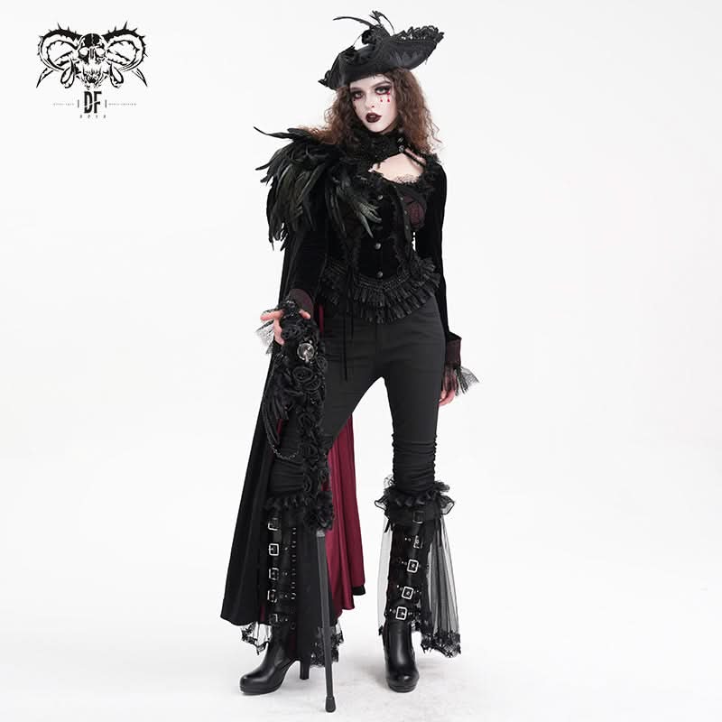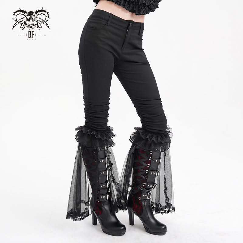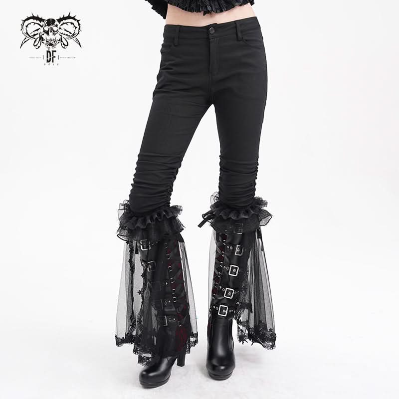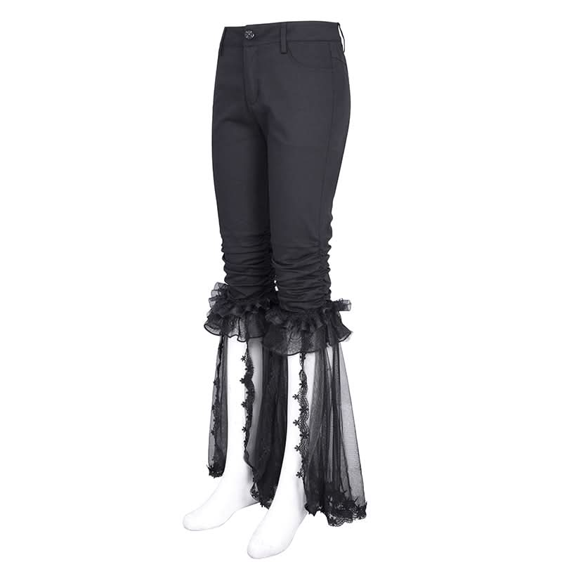 The Raven‑Haute Ruffled Breeches combine gothic couture with dramatic silhouette play, featuring knee‑length construction and cascading ruffles that feel pulled from a Victorian phantom’s wardrobe or a dark fantasy anime saga.