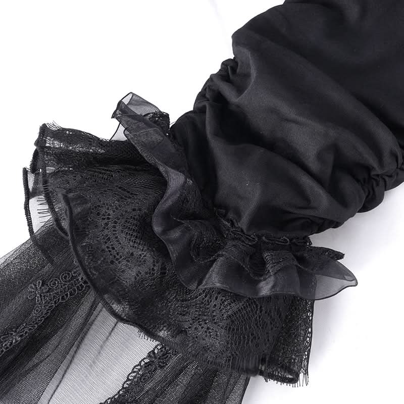 • Knee‑length cut with cascading ruffles adds dramatic gothic flair.
