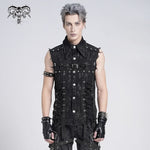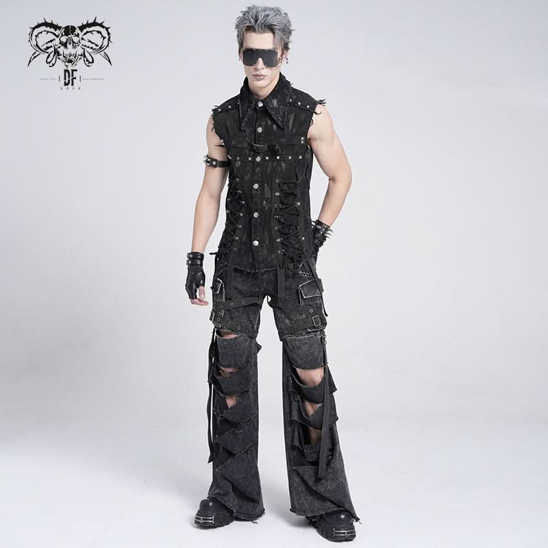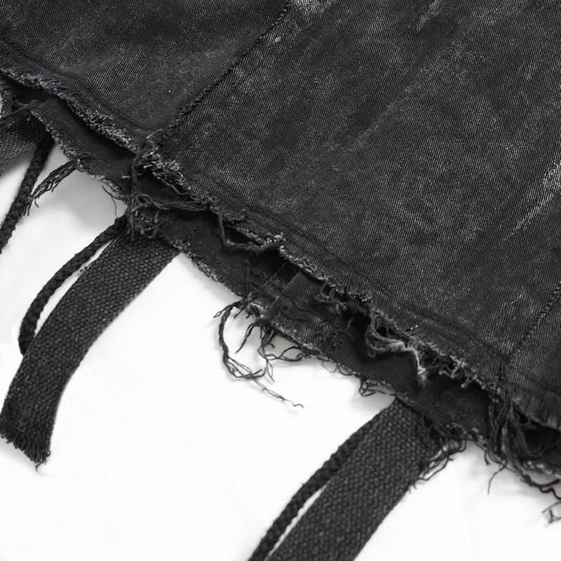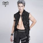 The Razorbound Sleeveless Shirt is a raw-edge punk top crafted with distressed hems and rugged woven fabric. Its sleeveless cut and angular silhouette evoke underground energy, perfect for punk, street, or alternative looks.
