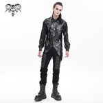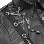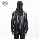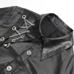 Its laminated scratched texture gives raw visual distortion, while the swallowtail hem adds a warped, stage-ready silhouette that echoes underground gigs and anime anti-hero swagger.