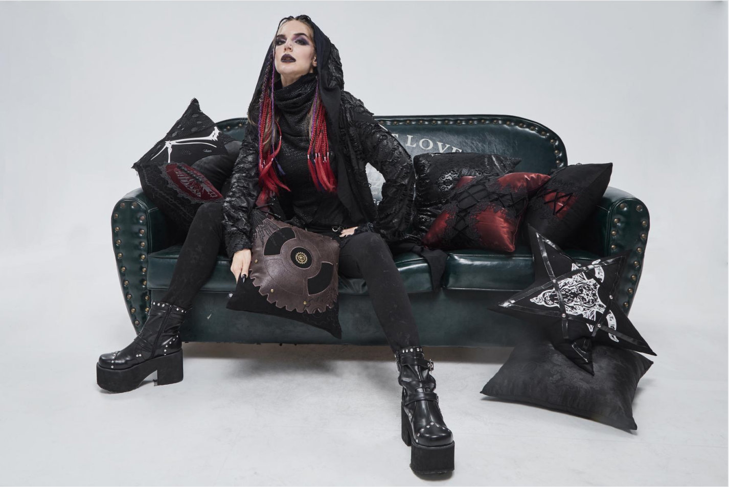 Oreiller gothique appliqué à engrenages « Nécromancie »