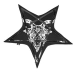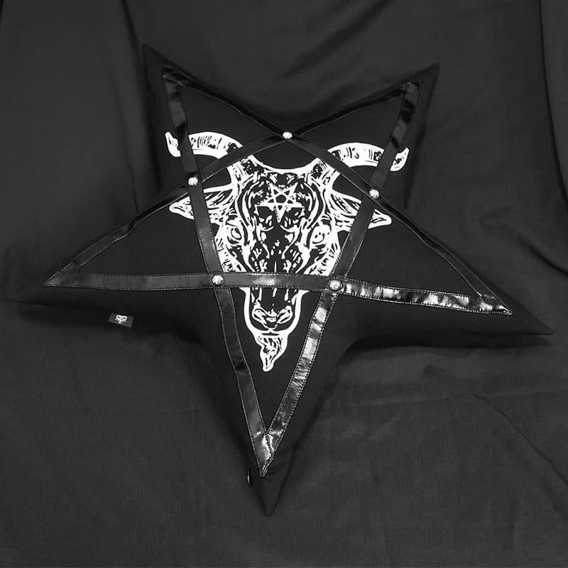 Un oreiller gothique qui représente baphomet et un pentagramme.