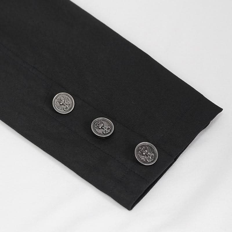 Defy convention with the 'Horus' Punk Overcoat, where edgy studs and sleek leather collide to create a striking silhouette that commands attention in every shadowed corner.