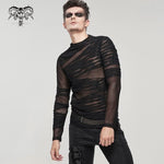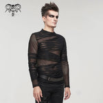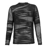 Ce t-shirt est élastique, a des manches longues et un style bandage déformé partout.
