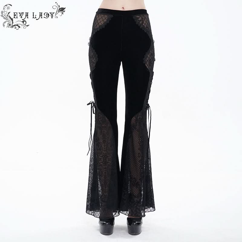Sparkle Witch Side Laced Up Velvet Flared Gothic Pants