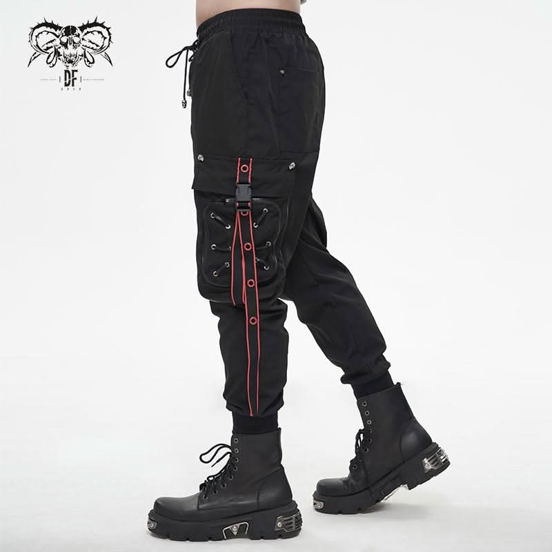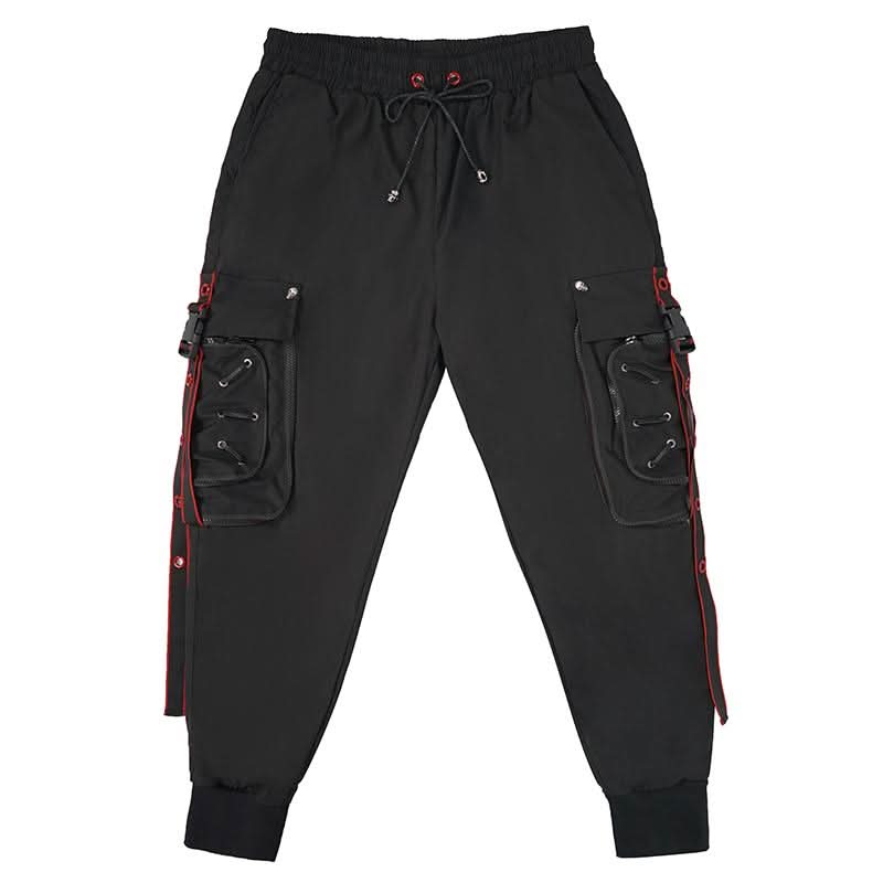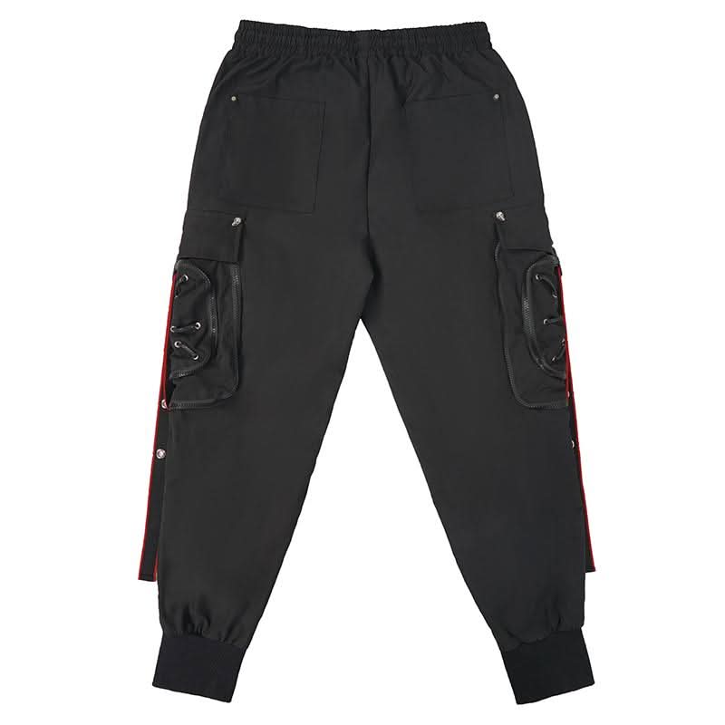 Embrace the chaos of individuality with striking cargo pants that redefine punk style through daring lace-ups and bold metal accents.