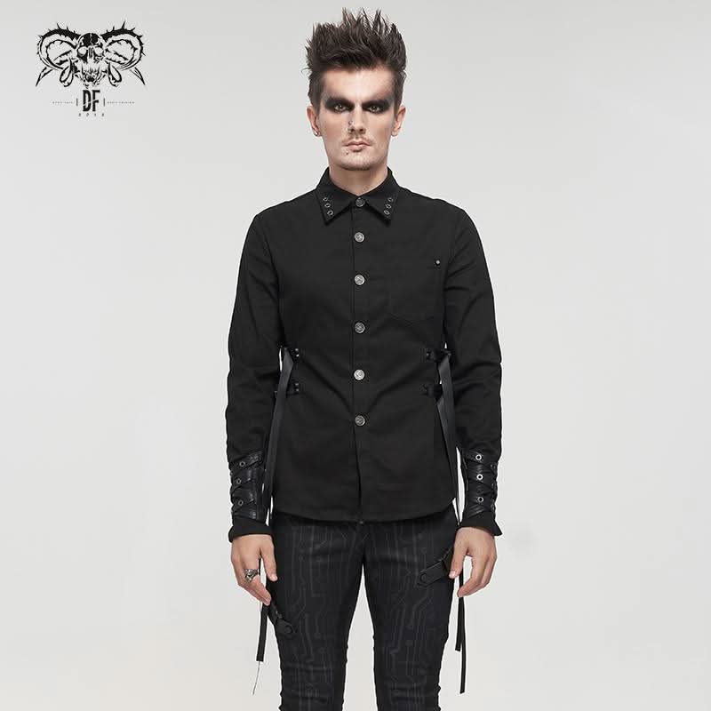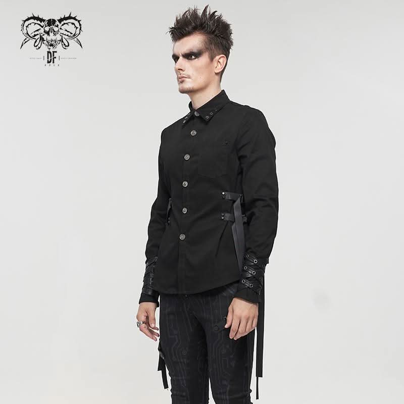 Une chemise punk à manches longues avec des bretelles en nylon.