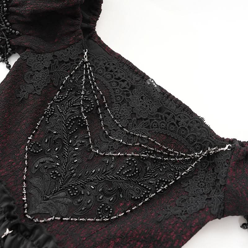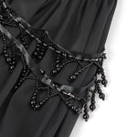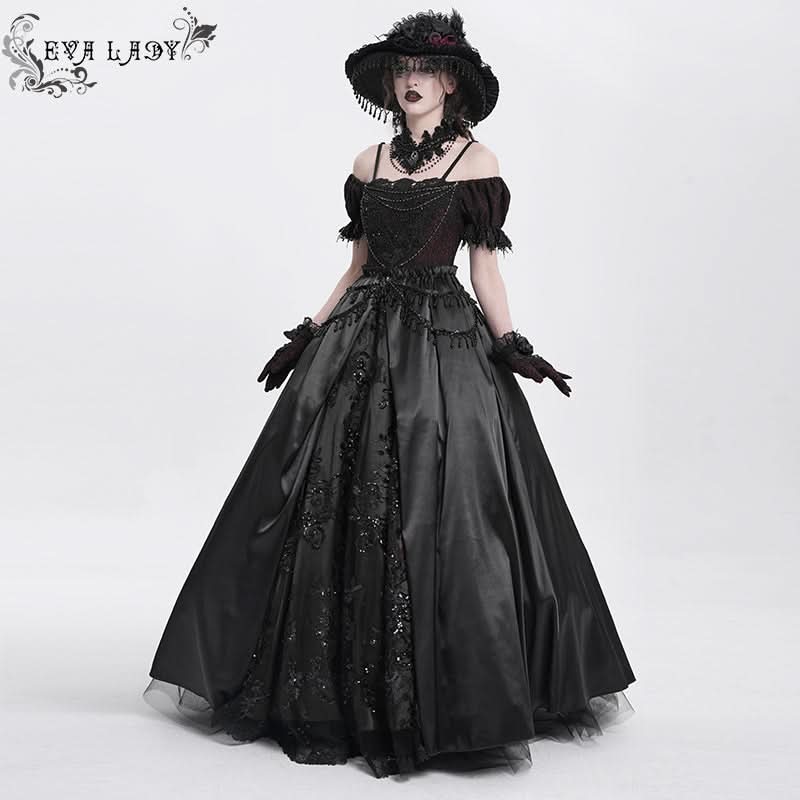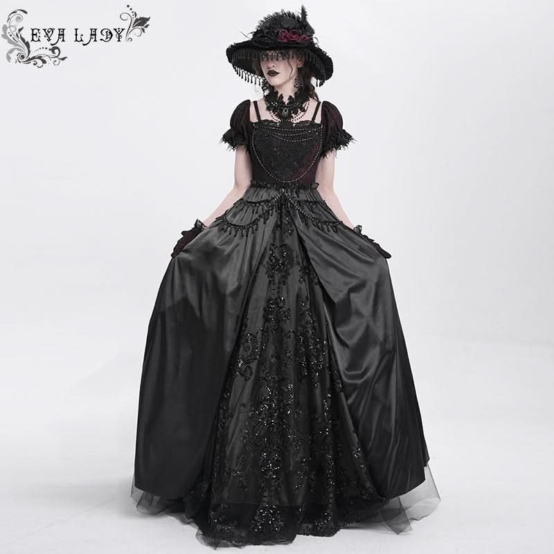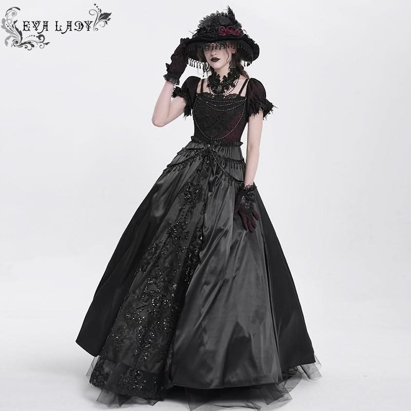 Its layered textures and shimmering accents evoke moonlit cathedrals, night palace ballets, and scenes from gothic fantasy, perfect for visual-kei styling, dark formal nights, or alt couture narratives.