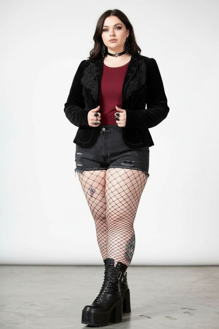 Command attention with the Death Ship Gothic Blazer, where elegance meets rebellion in luxurious velvet and haunting details for a style that whispers mystery.