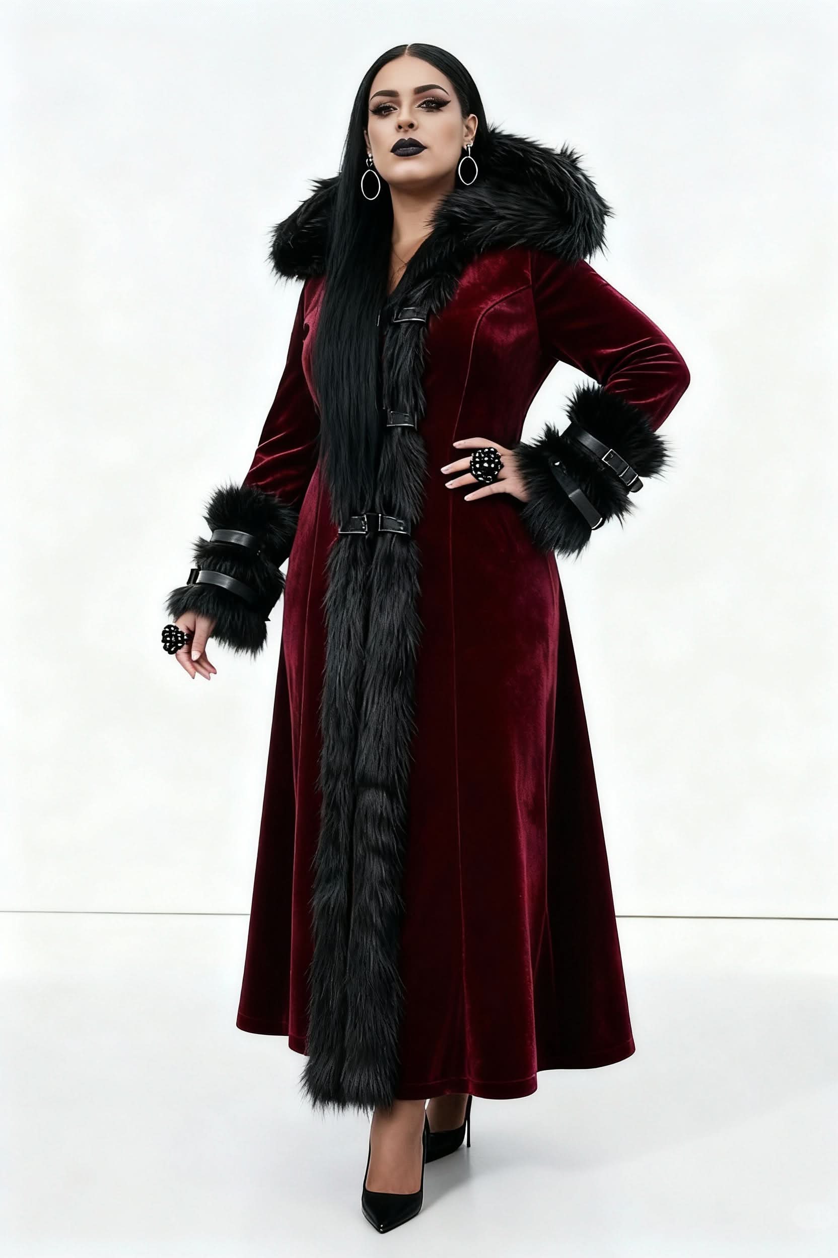 Manteau long 'Demonic Priestess' avec fourrure et capuche