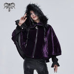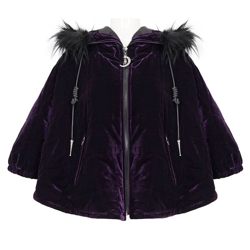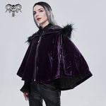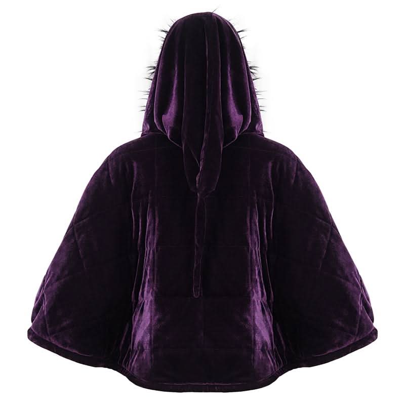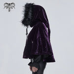 Cape gothique 'Sweet Oblivion' avec capuche doublée de fourrure (violet)