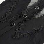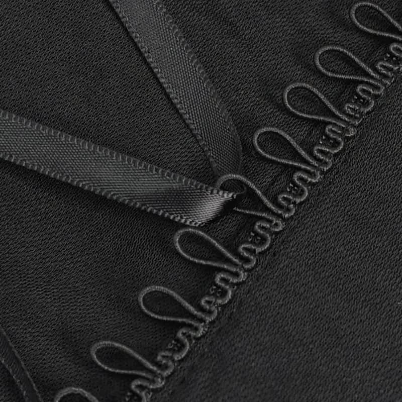 Drape yourself in dark allure with a captivating mesh neckline and corset detailing that celebrates your individuality and defies the ordinary.
