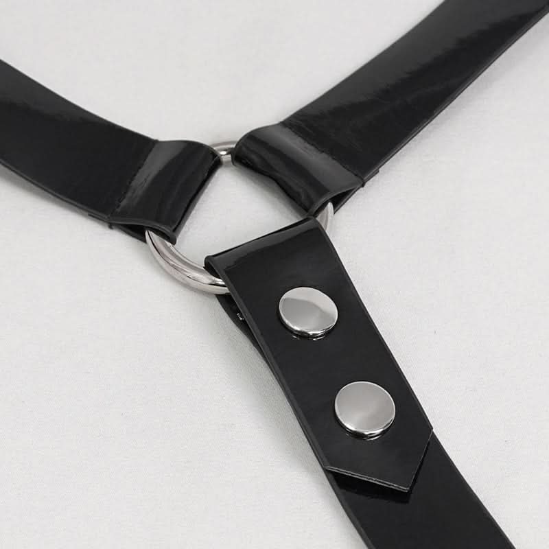 Dare to defy convention in a sleek suspender crop top that fuses punk rebellion with seductive elegance for a look that commands attention.