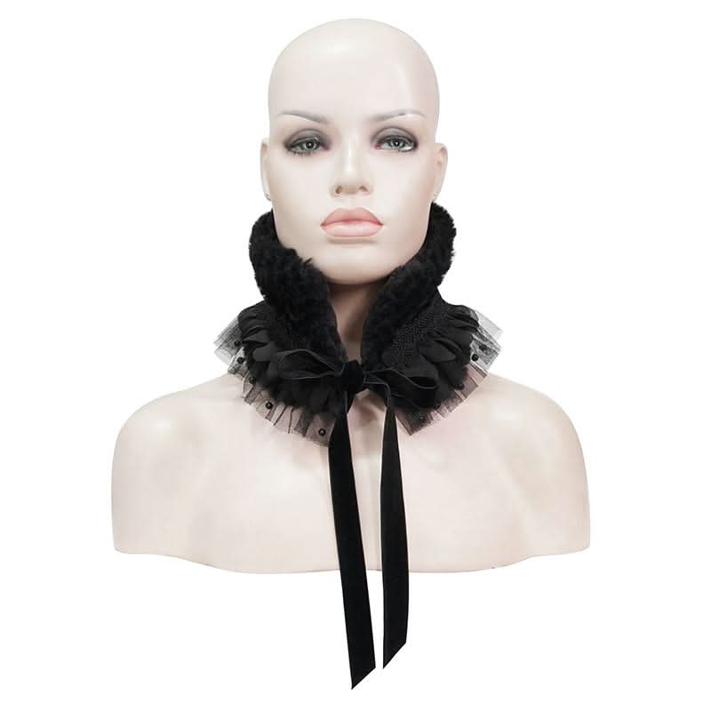 Elevate your gothic fashion ensemble with the stunning Callista Gothic Neckerchief and Headwear Accessory. This exquisite black neckerchief is designed to add a touch of dark elegance to any outfit. Crafted with attention to detail, it features a beautiful ruffled lace lining that can be easily removed, allowing you to customize your look to suit any occasion.