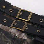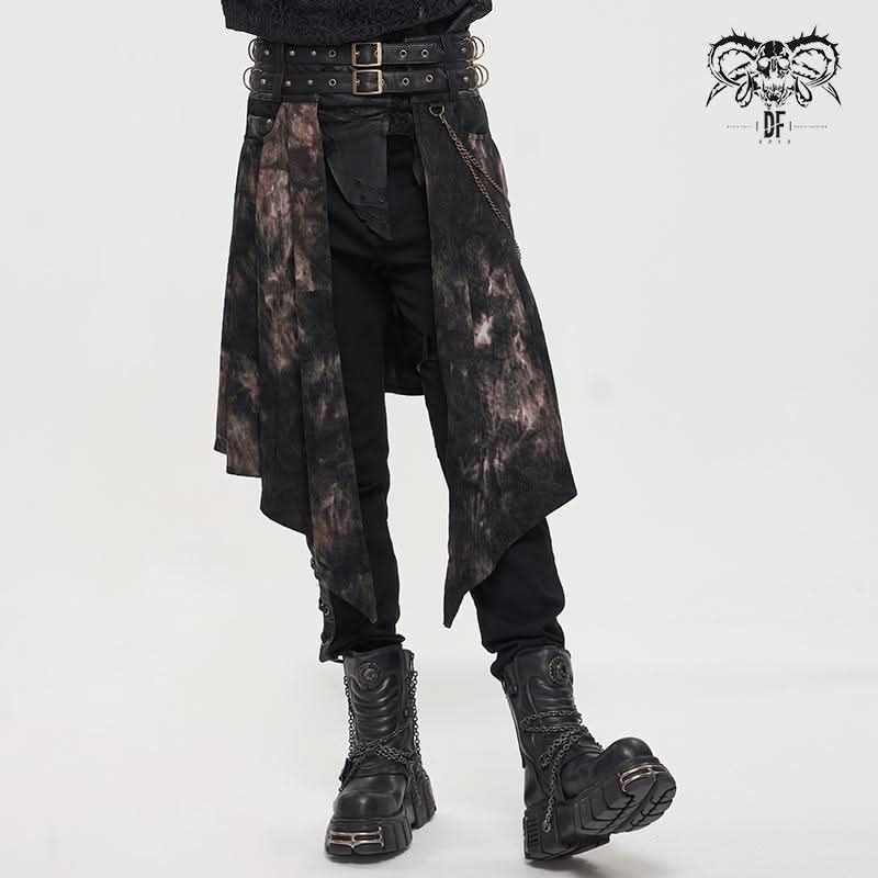 The waist is expertly spliced with leather belts adorned with metal embellishments and buckles, adding an edgy flair to your ensemble. With a waterfall hemline that flows beautifully and practical pockets on both sides, this kilt is not only stylish but also functional. Perfect for festivals, concerts, or everyday wear, the Ceres Punk Tie-Dye Kilt is designed for the modern goth who values both aesthetics and practicality.