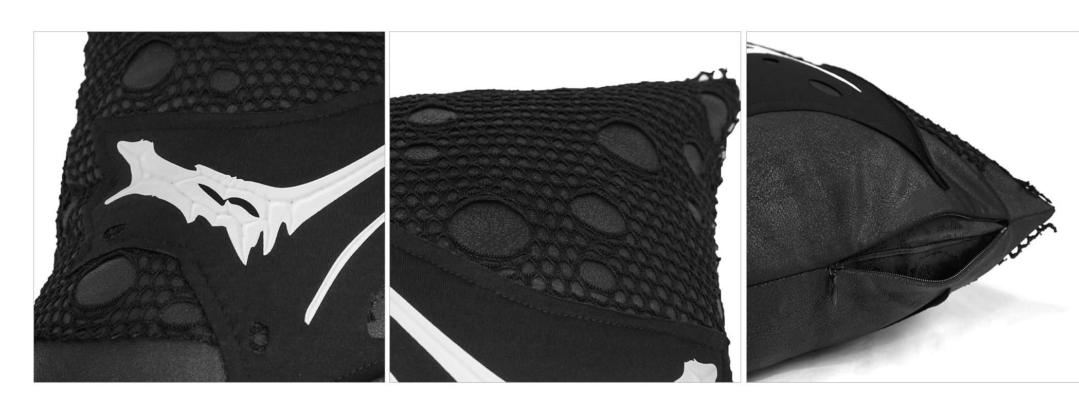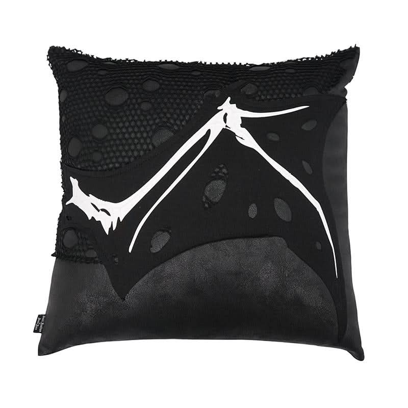 Transform your living space with the striking Wraith Punk Printed Pillow, a perfect addition for those who embrace gothic fashion. This unique pillow features a captivating design of a skeletal bat wing, layered with distressed mesh that adds an edgy touch to any room. Ideal for creating a moody atmosphere, this pillow is not just a decorative piece; it embodies the spirit of punk aesthetics.