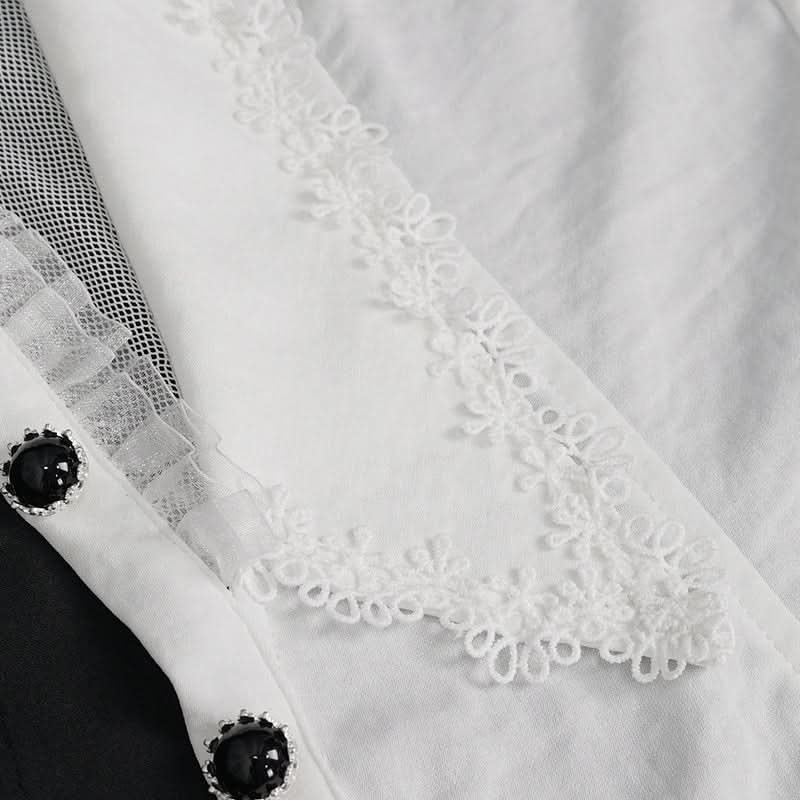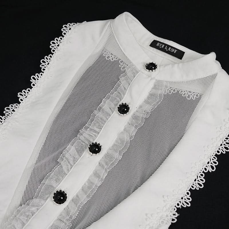 Embrace your dark elegance with the September Sun Gothic Sleeveless Button-up Top. This stunning white top is a perfect blend of gothic charm and contemporary style, making it an essential addition to your wardrobe. Crafted from soft chiffon, it offers a luxurious feel against your skin, while the mesh neckline adds a touch of allure to your look.