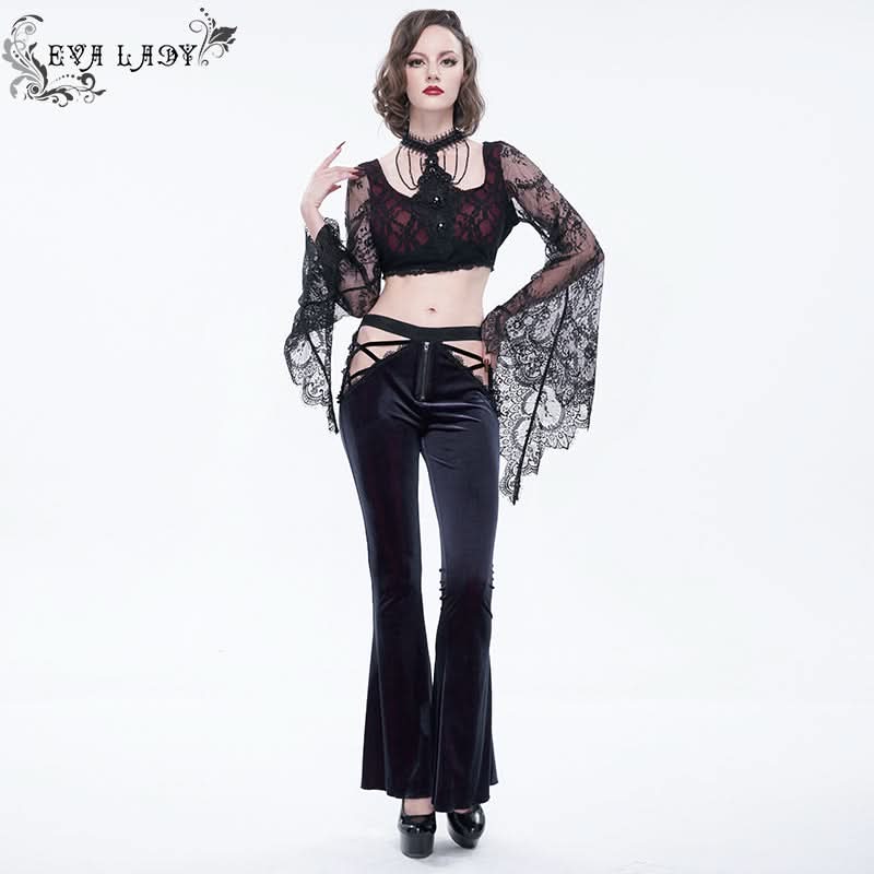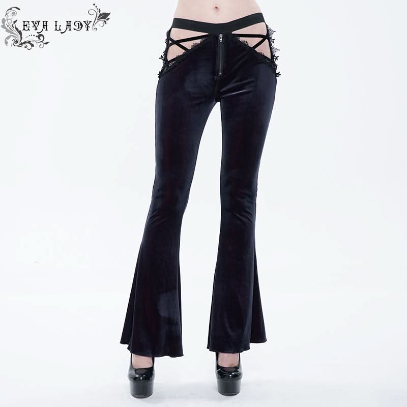 Negative Nancy Gothic Velvet Flared Pants With Lace