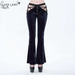 'Negative Nancy' Gothic Velvet Flared Pants With Lace