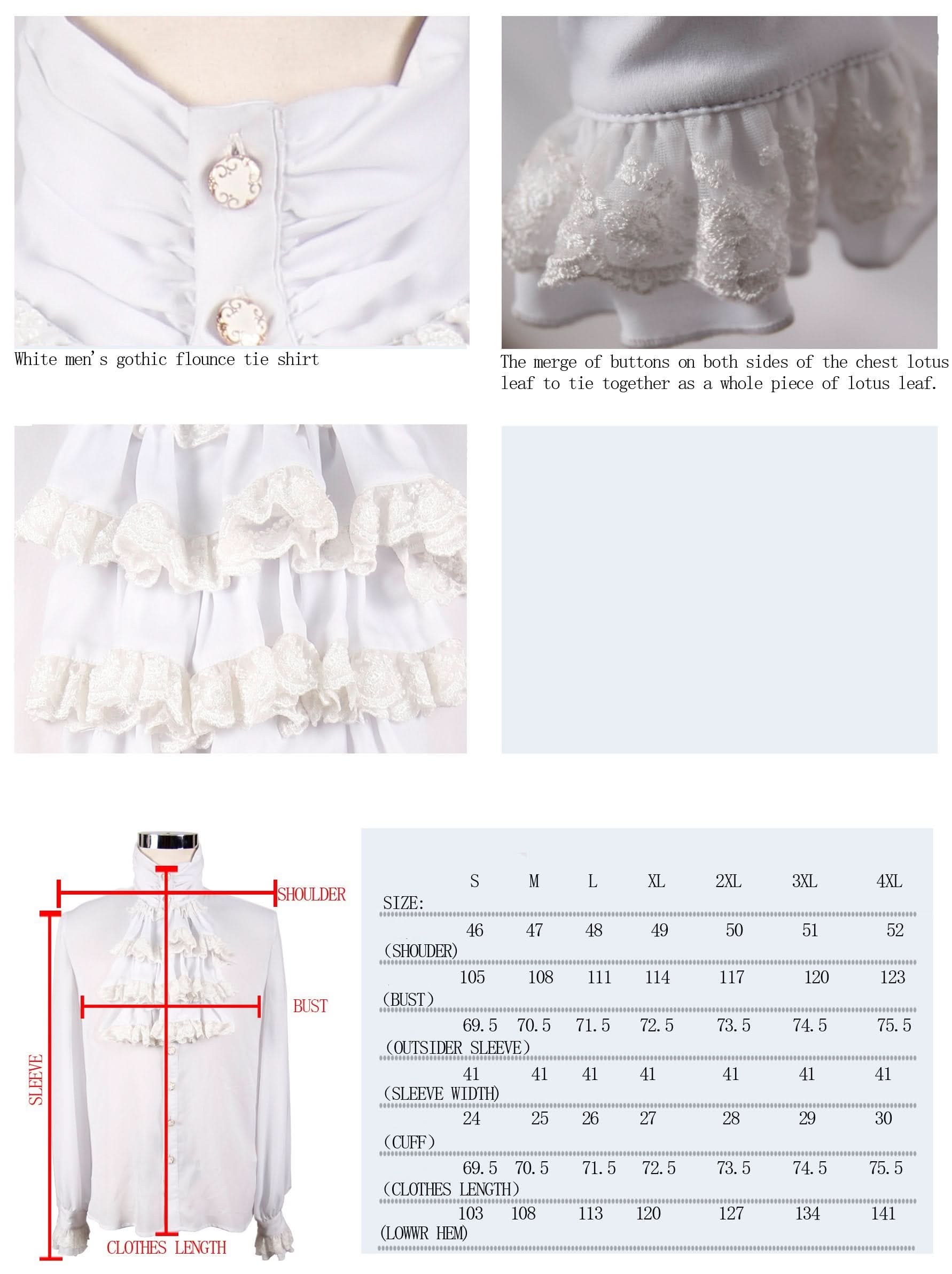 Punk Wedding High Collar Gothic Chiffon Men White Shirts With Bow Tie