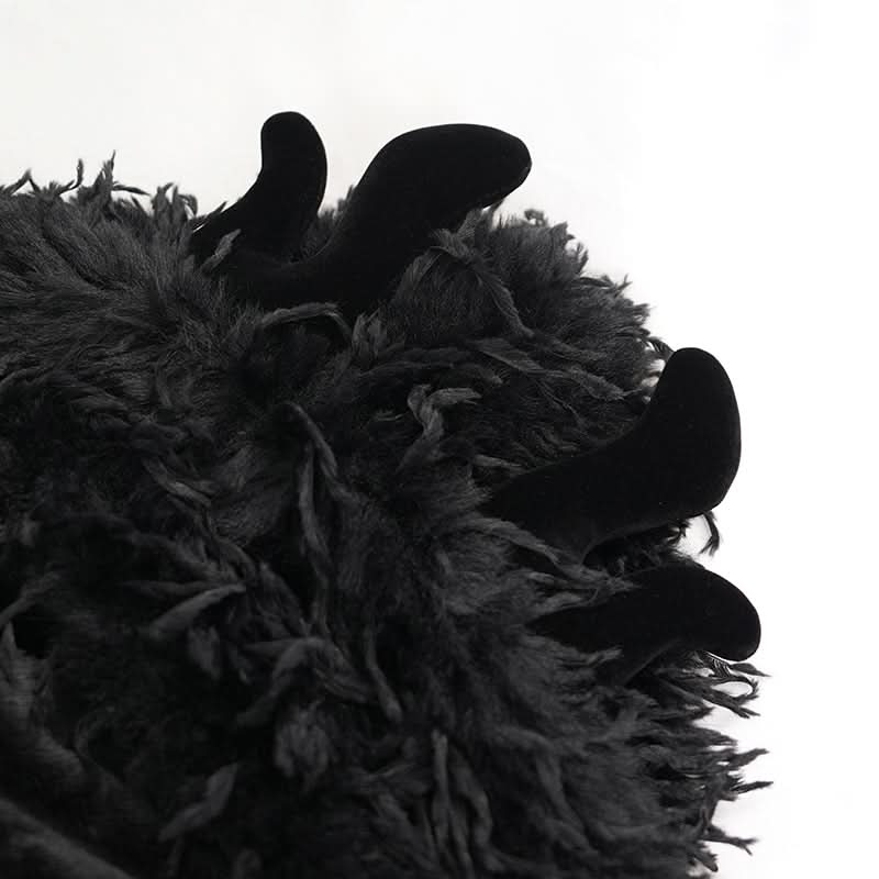Its deep black plush fabric and hooded silhouette create an urban warrior vibe that feels both inviting and rebellious like a late-night anthem played in shadowed alleys.