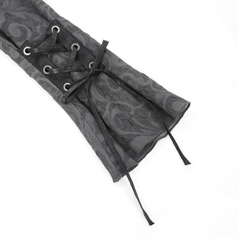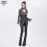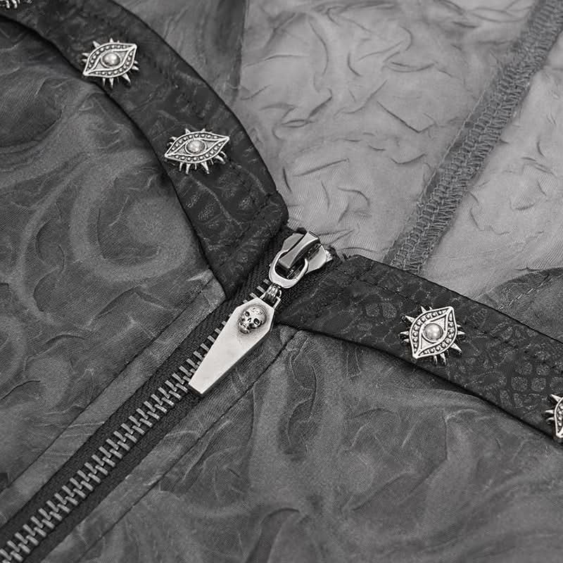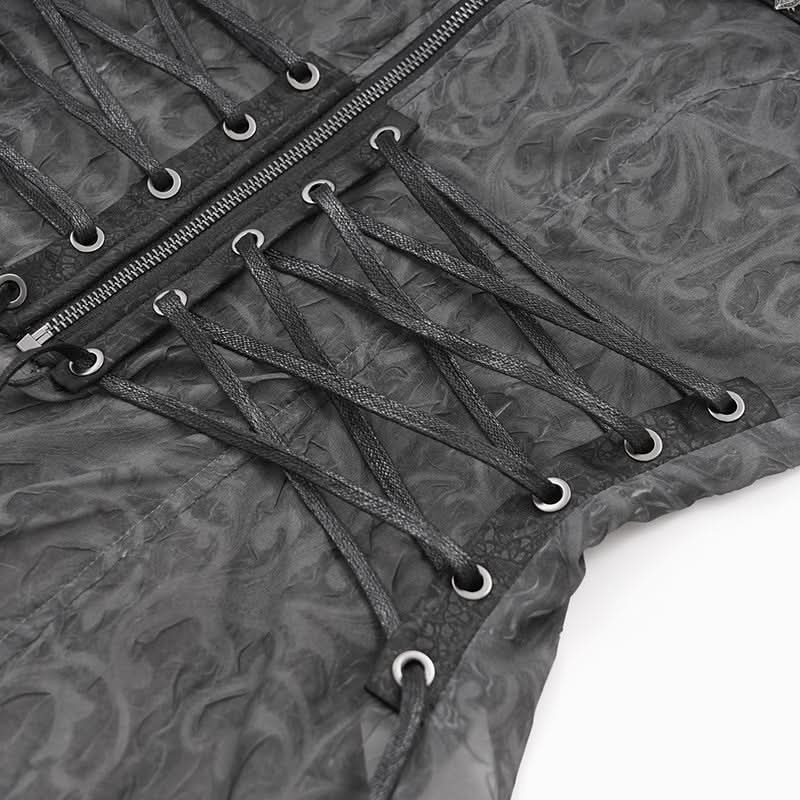 The subtle texture catches light like smoke in a club, while metal eyelet accents add that essential DIY rebellion. Layer it over harnesses, tanks, or bare skin and turn every entrance into a scene straight out of a dystopian opening sequence.