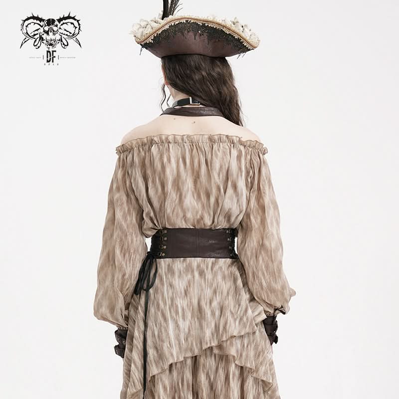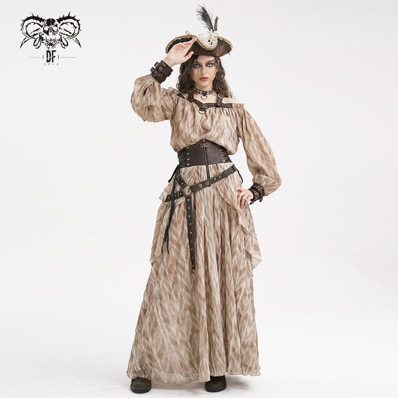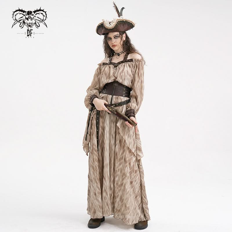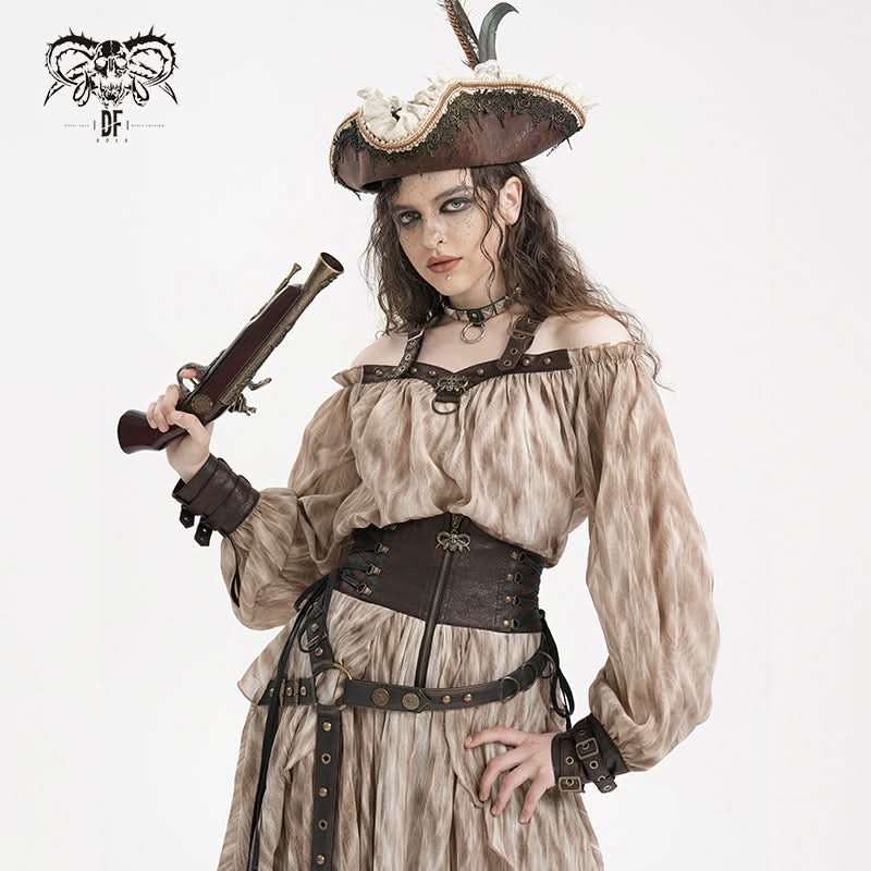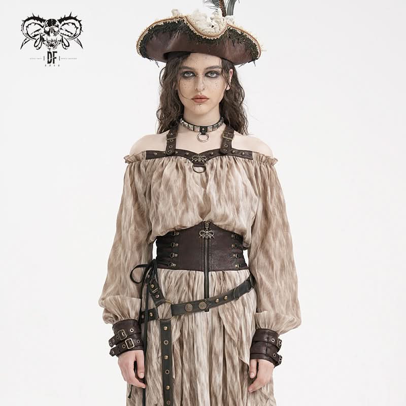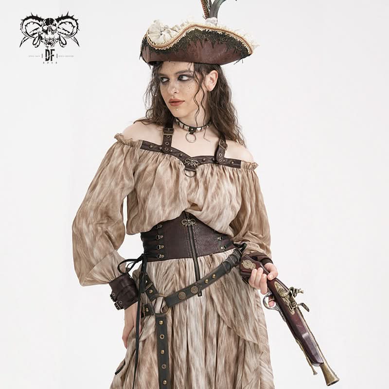 Steampunk-inspired halter neck and off-shoulder design