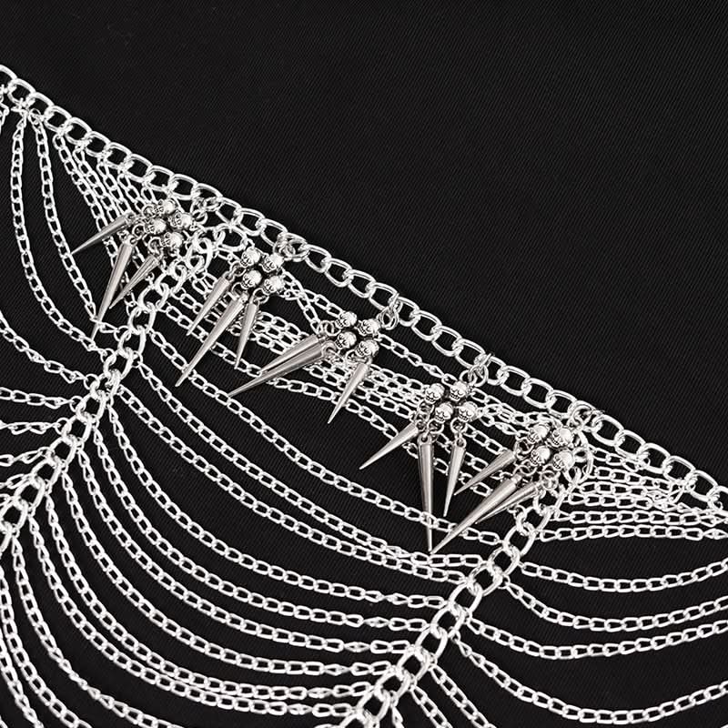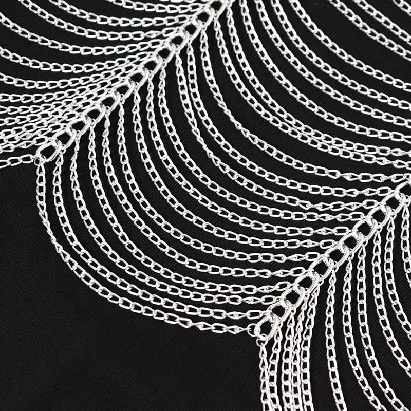 Featuring layers of long, wide chain tassels that drape like dark rain across the brow, this headdress evokes an aura of regal rebellion and shadowed mystique perfect for alt fashion nights, cosplay, or bold performance looks.