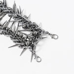 Two interlocking metal chains cascade around the neck, anchored by jagged spike accents that evoke urban grit and underground rebellion.