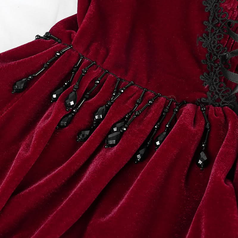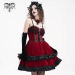 The Ruby Sonata Velvet Dress blends classic Lolita charm with a bold gothic twist. Its rich red velvet evokes candlelit ballrooms and chamber orchestras at midnight, while the suspender details add a touch of punk-poise and visual-kei attitude.