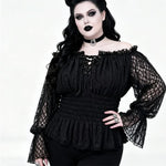 Gothic Daily Life Off Shoulder Elastic Waist Lantern Sleeve Lace Sexy Women T Shirt