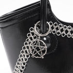 Metal hardware, distressed accents, and structured form give it both function and fierce attitude perfect for carrying your essentials while boosting any goth, punk, or alt fashion ensemble.