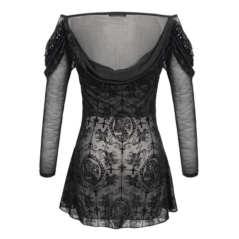 Shadow Song Gothic Mesh Top With Boat Neckline