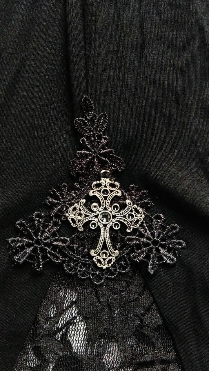 Each leg is adorned with a striking silver crucifix charm, enhancing the overall gothic aesthetic while showcasing your individuality. Whether you're attending a concert, a night out with friends, or simply expressing your unique style, these bell bottom pants will elevate your wardrobe to new heights. Pair them with your favorite band tee or an elegant lace top for a look that is both edgy and chic.
