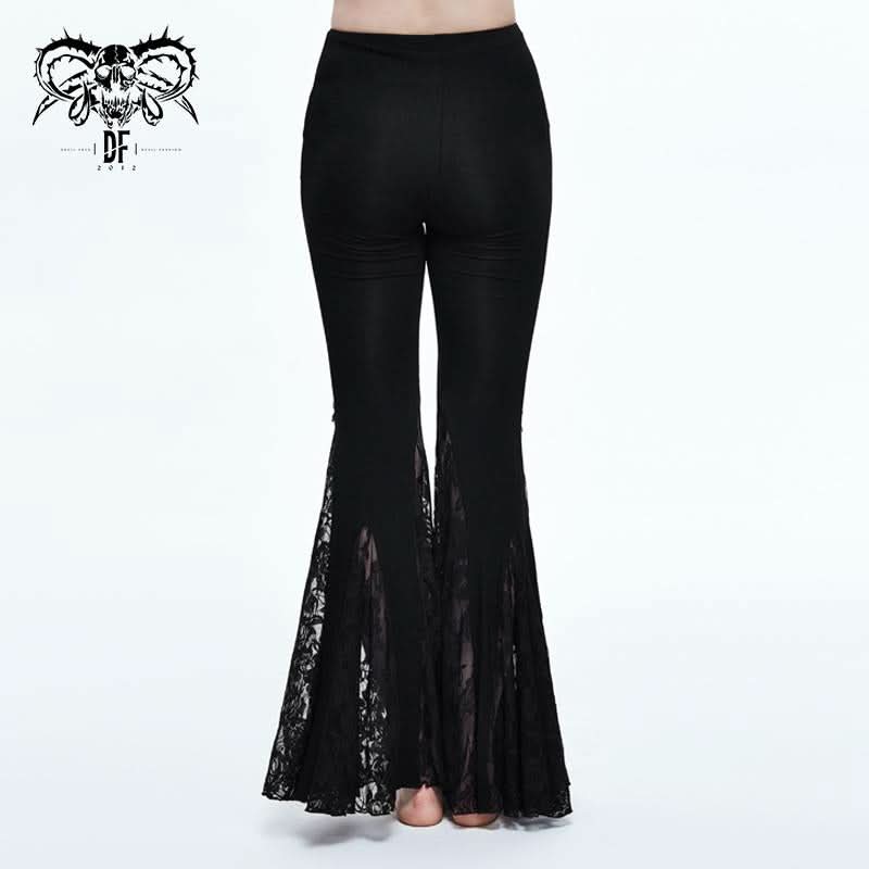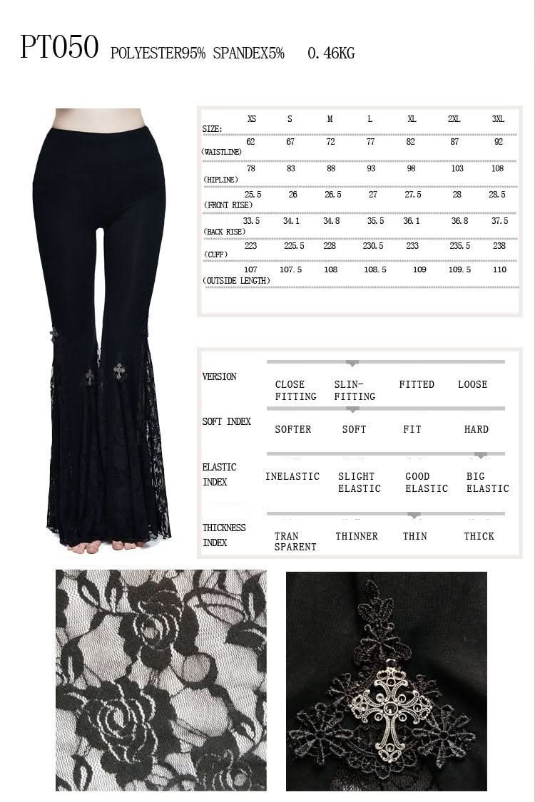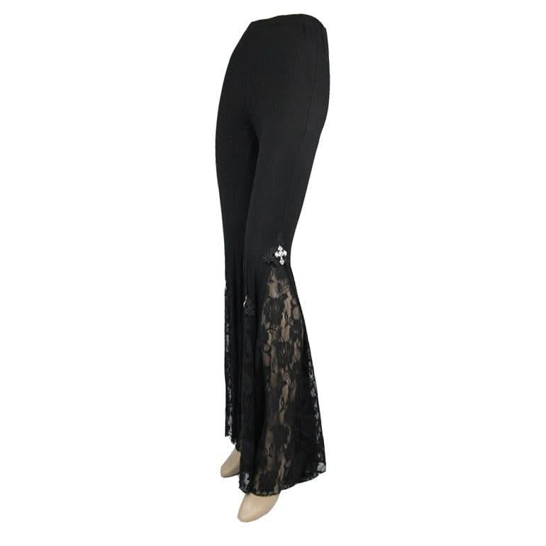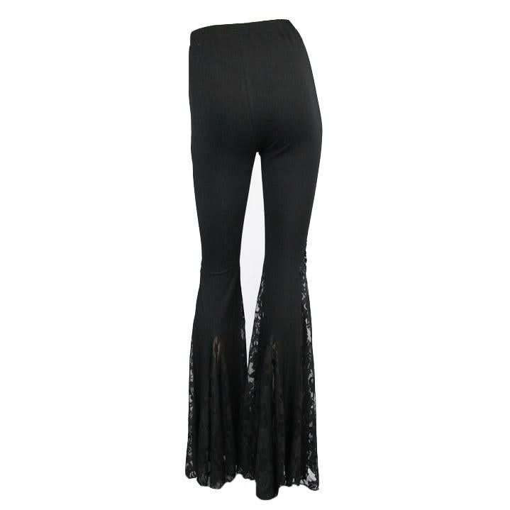 Gothic Women Cross Decoration Knit Lace Bell Bottoms Pants